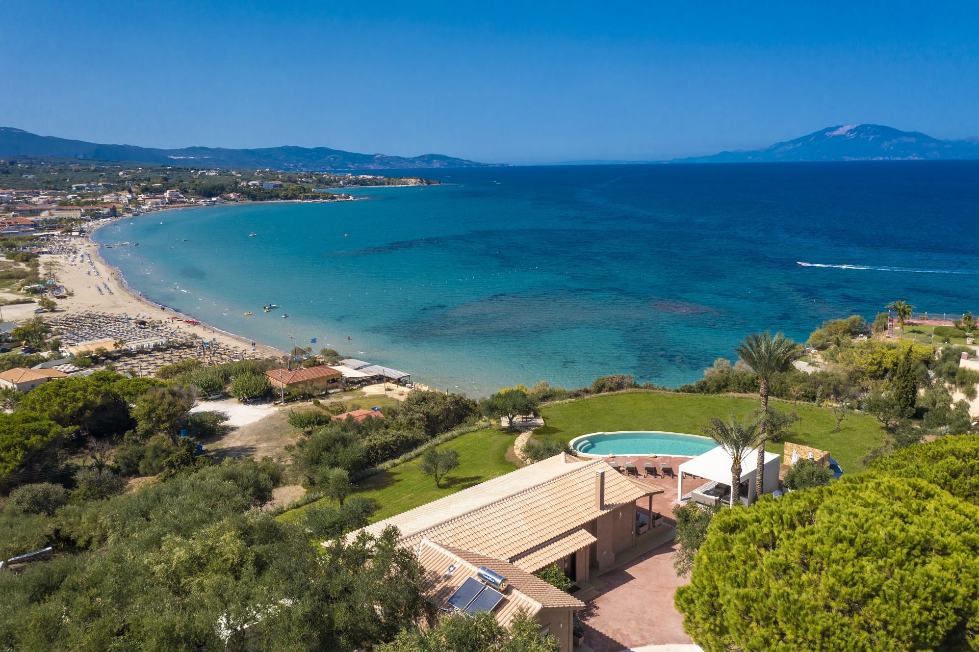 At the edge of the estate, overlooking the sea by its cockpit position, there is a small area equipped with a double swinging chair and two armchairs. The perfect place to enjoy the sunset and the colors painting the horizon.